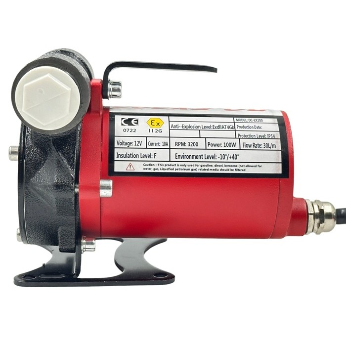 Изготовлен в соответствии с нормами EX. Чугунный корпус с антикоррозийным покрытием. На кабеле электропитания установлена кнопка включения. На корпусе имеется крепление для провода заземления. Аналог американского насоса Fill-Rite, но дешевле в несколько раз!
