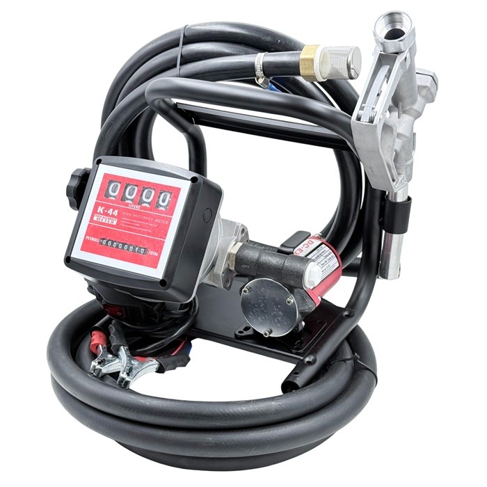 Заправочный комплект для перекачки и учета бензина собран на металлической пластине с удобной ручкой для переноски и специального крепления для установки заправочного пистолета.